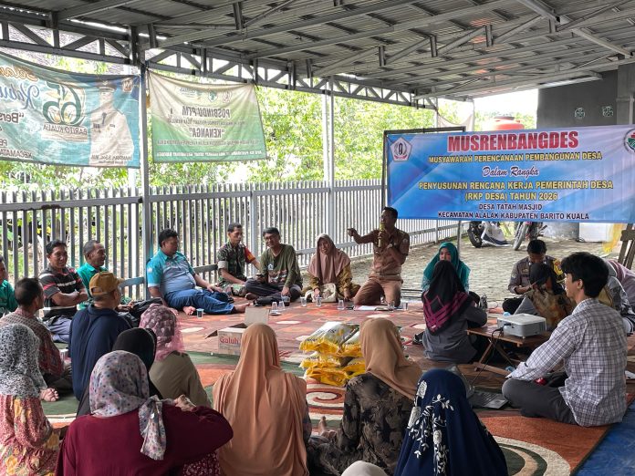 Seputarbanua.com, Barito Kuala, Kalsel – Pemerintah Desa Tatah Masjid, Kecamatan Alalak, Kabupaten Barito Kuala, menggelar Musyawarah Perencanaan Pembangunan Desa (Musrenbangdes) dalam rangka penyusunan Rencana Kerja Pemerintah Desa (RKP Desa) tahun 2026, Senin siang (20/10/2025).